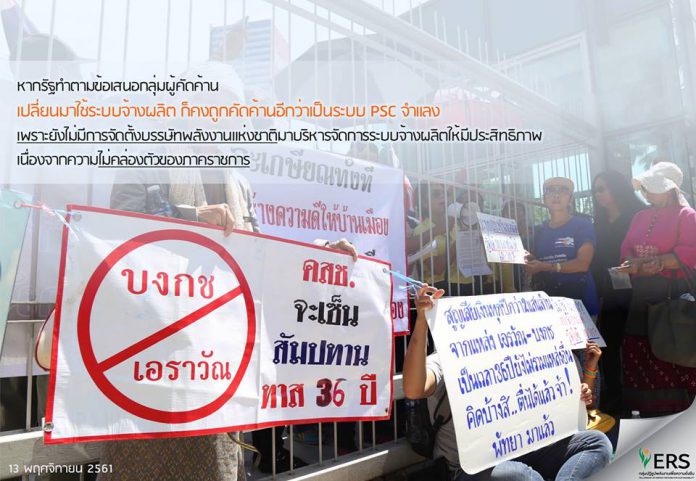 ข้ออ้างของกลุ่มผู้คัดค้านการเปิดประมูลแหล่งปิโตรเลียมบงกชและเอราวัณของรัฐบาลคือ ระบบแบ่งปันผลผลิตที่ไม่มีการจัดตั้งบรรษัทน้ำมันแห่งชาตินั้นเป็นระบบสัมปทานจำแลง จึงเรียกร้องให้ใช้ระบบจ้างผลิตแทน แต่เมื่อรัฐไม่สนใจ ทางกลุ่มคัดค้านก็มากล่าวหาผู้เข้าร่วมประมูลว่าขาดคุณสมบัติ คำถามคือ ระบบจ้างผลิตและระบบแบ่งปันผลผลิตต่างกันหรือไม่ เหมาะกับแหล่งปิโตรเลียมในไทยอย่างไร หรือว่ากลุ่มคัดค้านจะหาประเด็นมาค้านจนกว่าจะได้ในสิ่งที่ตนเองต้องการ